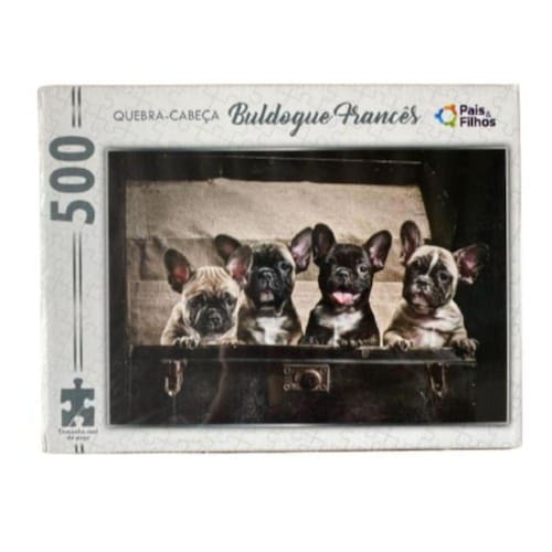 QUEBRA CABEÇA 500 PEÇAS PAIS & FILHOS REF:PF2530 TEMA:Buldogue Francês MATERIAL: Papel cartonado Idade: + 10 anos Dimensões aproximadas: Imagem, 50 CM LARGURA x 35 Cm DE ALTURA Peças: 2cm x 2cm Com o Quebra cabeça de 500 peças da Pais & filhos a interação entre a família é mais divertida. Uma forma de desenvolver a concentração junto do foco, promovendo raciocínio lógico através de uma brincadeira. Homologação Inmetro: IP-BRI-0900/2021-55