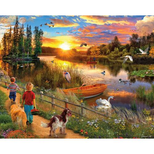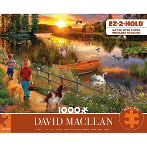 Ceaco - Quebra-cabeça David Maclean - Pôr do sol do rio - 1000 peças grandes - Contém um quebra-cabeça de 1000 peças grandes de David Maclean. - Molde feito à mão com peças de formato exclusivo. Feito nos EUA. Fabricado de forma sustentável. - Apresenta imagens coloridas. - Colecione todos os estilos da sua coleção favorita. - Ótimo para noites em família, presentes, reuniões de férias, festas e muito mais. Quebra-cabeça de alta qualidade, inovador e desafiador da Ceaco, intrigando milhões desde 1987!