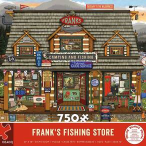 Ceaco - Frank's Fishing Store – Quebra-cabeça de 750 peças - Contém um quebra-cabeça de 750 peças. - Molde feito à mão com peças de formato exclusivo. Feito nos EUA. Fabricado de forma sustentável. - Apresenta imagens coloridas. - Colecione todos os estilos da sua coleção favorita. - Ótimo para noites em família, presentes, reuniões de férias, festas e muito mais. Quebra-cabeça de alta qualidade, inovador e desafiador da Ceaco, intrigando milhões desde 1987!
