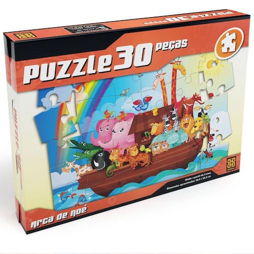 Quebra Cabeça c/30 peças - Arca de Noé - Grow. Não deixe de brincar e se divertir com este quebra-cabeça. São 100 peças, para você encaixar uma a uma até formar uma linda imagem. Mais que um passatempo divertido, os quebra-cabeças desenvolvem o raciocínio, relaxam e se transformam num autêntico hobby. Para crianças acima de 6 anos. As cores podem variar entre as imagens mostradas acima e o produto. Imagens meramente ilustrativas. Objetivo:Passatempo.Segurança CE-BRI/IQB-000202 - NM 300/2002 - OCP 0006 Segurança de Brinquedo. Ean: 7908010128840