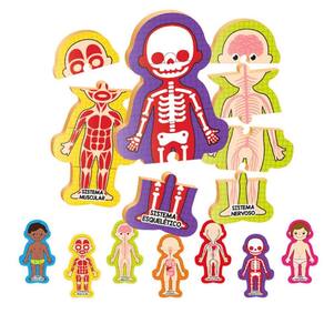 Conheça o Corpo Humano é um jogo incrível É um jogo quebra-cabeça de montagem dos sistemas do nosso corpo. São 28 peças em madeira coloridas e divertidas que auxiliam em diversos aspectos do desenvolvimento da criança, tais como: interação social, coordenação motora, raciocínio lógico e atenção.