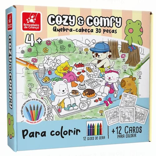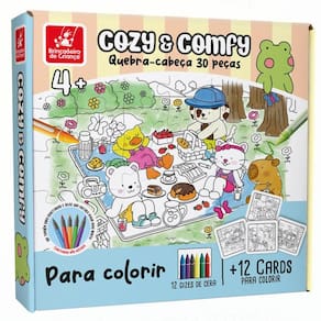 Dicas de uso:O Quebra-cabeça Cozy e Comfy 30 Peças - Brincadeira de Criança é ideal para momentos de diversão que estimulam a criatividade e a coordenação motora. Para aproveitar ao máximo, monte o quebra-cabeça em uma superfície plana e bem iluminada, e, após encaixar todas as peças, use lápis de cor, giz de cera ou canetinhas atóxicas para colorir as ilustrações do seu jeito. Incentive a criança a criar livremente, tornando a atividade ainda mais personalizada e artística. Após pintar, é possível colar as peças em uma cartolina e transformar o quebra-cabeça finalizado em um quadro decorativo. Guarde em local seco para preservar a qualidade das peças e repintar quantas vezes quiser!