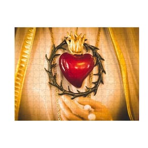 Quebra-Cabeça Da Fé Sagrado Coração Maria 300 Peças Em Mdf