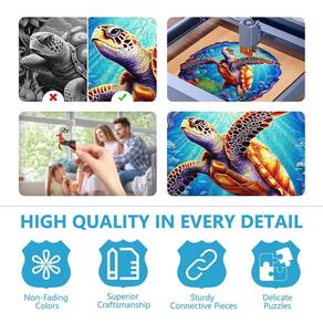 Bem-vindo ao Pijesaksa PUZZLE Se você está procurando uma maneira divertida de treinar e desafiar seu cérebro, não há melhor opção do que resolver um bom quebra-cabeça. Este hobby clássico é ótimo para melhorar sua memória de curto prazo, habilidades de resolução de problemas e atenção aos detalhes. Além disso, os quebra-cabeças também podem ajudá-lo a relaxar após um longo dia de trabalho. É um alívio de desconforto eficaz quando você quer uma pausa rápida da agitação da vida diária. Seja você um ávido quebra-cabeças ou experimentando pela primeira vez, oferecemos uma ampla seleção para você escolher. Deixe sua mente vagar por pastagens tranquilas e florestas verdejantes com estes conjuntos de quebra-cabeças! Cada peça dos nossos quebra-cabeças de madeira tem uma forma de fantasia distinta, de vários tipos de varinha mágica a estrelas e animais mágicos. Quando terminar, eles criam uma obra de arte de tirar o fôlego que você pode pendurar na sua sala de estar. Nossos quebra-cabeças são divertidos para toda a família! Resolver um quebra-cabeça juntos é uma ótima experiência de união, então por que não apresentar aos seus filhos o maravilhoso mundo dos quebra-cabeças? Esta é uma excelente escolha para noites de jogos em família. - Conjunto de quebra-cabeça temático de tartaruga do mar profundo - Desfrute de um tempo relaxante com este fantástico quebra-cabeça de madeira de tartaruga do mar profundo! Nossos quebra-cabeças de madeira contêm dezenas de padrões de design autênticos desenhados à mão, intrincadamente cortados nas formas de diferentes peças. São obras de arte dentro do quebra-cabeça. Temos três tamanhos para atender a diferentes necessidades. - Design altamente interligado: nossos quebra-cabeças de madeira adotam diferentes caminhos de design altamente interligados e através da tecnologia de corte a laser, para que as peças possam travar e se encaixar firmemente, o que não é tão fácil de dispersar quanto os quebra-cabeças de outras marcas. - Diversão para todas as idades – Use nossos quebra-cabeças de madeira para adultos e crianças como uma forma de aliviar o desconforto após um longo dia de trabalho ou deixe seus filhos treinarem suas habilidades de resolução de problemas e pensamento com eles. Especialmente por enquanto, as pessoas são aconselhadas a reduzir as atividades ao ar livre, este quebra-cabeça de formato exclusivo será a melhor escolha para você! É ótimo para toda a família! Quando você terminar, você descobrirá que a cor é incrível. - Quebra-cabeças de madeira fabulosos para presente – Se você procura um presente significativo de aniversário ou feriado para namorado, filho, pai, meninas ou aqueles que querem ter um projeto divertido, esses quebra-cabeças de madeira exclusivos serão a escolha perfeita. Dê às pessoas amadas horas de entretenimento. É um prazer reutilizável e pode ser uma decoração elegante em casa. - Serviço pós-venda - Nossos quebra-cabeças de madeira oferecem uma garantia de devolução do dinheiro em 30 dias para cada compra. Se você encontrar algum problema de qualidade ou peça faltando, sinta-se à vontade para entrar em contato conosco via Amazon, forneceremos uma substituição ou reembolso para esses quebra-cabeças. Então leve os quebra-cabeças exclusivos de madeira para casa agora!