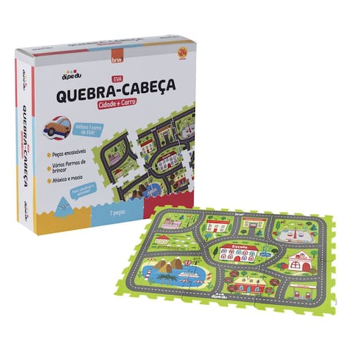 O Quebra-Cabeça de E.V.A "Cidade + Carro" da Dipedu é super divertido e há várias formas de brincar! Com peças encaixáveis, deixe seu filho soltar a imaginação enquanto brinca.