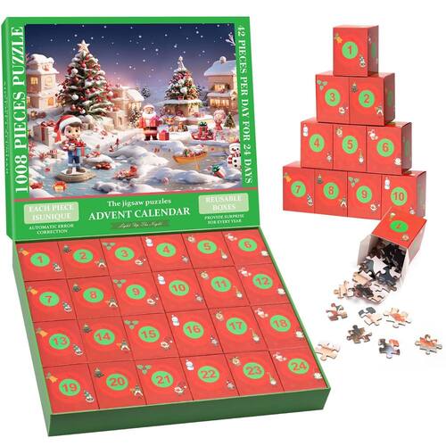 - Quebra-cabeça do calendário do Advento de Natal: linda caixa resistente contendo 1008 peças divididas em 24 caixas pequenas, criando um quebra-cabeça com contagem regressiva do calendário de Natal, vem com um pôster de referência. O quebra-cabeça concluído mede 50* 70 cm/19,7* 27,5 polegadas
