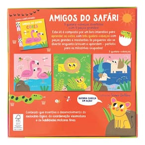 Amigos do safári, venham comigo aprender as cores! Um livro interativo para aprender sobre as cores no emocionante universo do safári, com três quebra-cabeças de peças grandes e resistentes. Perfeito para que os pequenos aprendam brincando, enquanto exploram o fascinante mundo dos animais.O conteúdo promove o desenvolvimento do raciocínio lógico, da coordenação motora e das habilidades motoras finas.