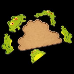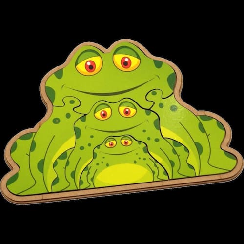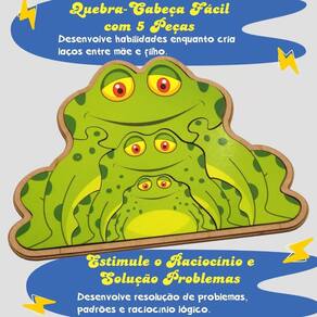 Quebra cabeça família sapo 5 peças madeira Quebra cabeça família sapo