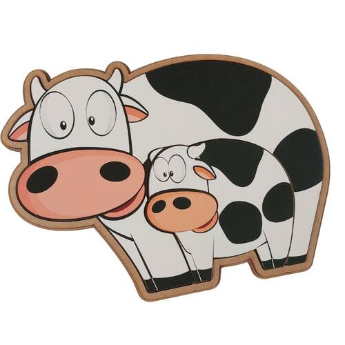 Quebra cabeça família vaca 2 peças madeira Quebra cabeça família vaca