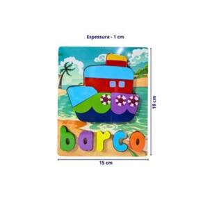 Conheça o Quebra-Cabeça de Encaixe Figura e Palavra Barco, um brinquedo educativo em madeira resistente e colorida, com 12 peças, que une aprendizado e diversão em uma única atividade. O tabuleiro ilustrado mede 15 x 18 x 1 cm e acompanha 11 peças coloridas para encaixar, formando não apenas a figura de um lindo barco, mas também a palavra “barco”, estimulando o reconhecimento de letras e a associação entre imagem e escrita. Ideal para crianças a partir de 3 anos, esse brinquedo educativo auxilia no desenvolvimento da coordenação motora fina, memória visual, atenção, raciocínio lógico e alfabetização inicial. O encaixe das peças promove a noção de forma e espaço, enquanto a palavra ajuda na familiarização com as letras, tornando o aprendizado lúdico e prazeroso. O Quebra-Cabeça Figura e Palavra Barco em madeira é uma excelente opção de presente, perfeito para uso em casa, na escola ou em atividades pedagógicas. Além disso, por ser compacto e leve, é ideal para levar em passeios ou viagens. Indicado para crianças a partir de 3 anos (conforme fabricante). Conteúdo da embalagem: 1 tabuleiro com 11 peças para encaixar Medidas do tabuleiro: 15cm x 18cm x 1cm (CxLxA) Composição: Madeira