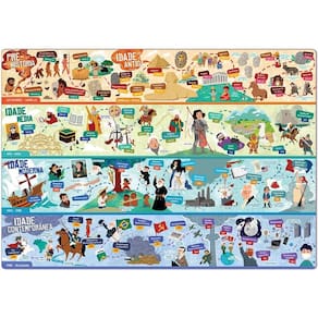 Descubra eventos marcantes da história do mundo desde o surgimento do homem até os dias atuais! Viaje pela pré-história, idade antiga, idade média, idade moderna e a idade contemporânea neste divertido quebra-cabeça de chão! Este produto acompanha um guia de curiosidades.