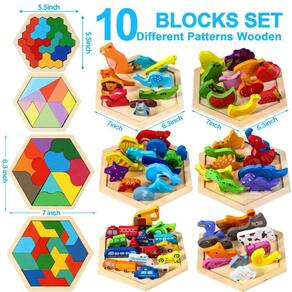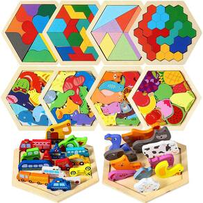 - Wooden Tangram Puzzles Bulk: existem 10 peças de blocos russos de madeira para crianças em designs diferentes, especialmente projetados para testar seu cérebro, ajudar a praticar concentração e foco e ajudá-lo a superar seus momentos entediantes em viagens longas