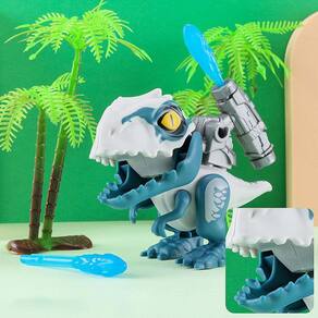 Um pequeno lançador é instalado na parte traseira do dinossauro, que transmite um pequeno foguete com um clique.