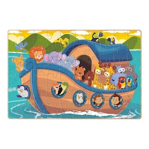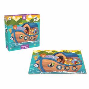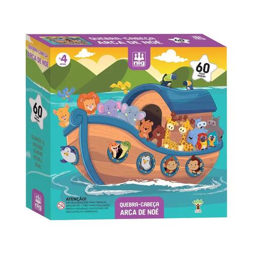 No quebra-cabeça Arca de Noé da NIG as girafas, os elefantes e todos os bichos são desenhados com um traço leve e colorido.