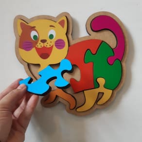 Um dos brinquedos educativos mais buscados pelas famílias são os quebra-cabeças Esse quebra-cabeça infantil é composto por 7 peças grandes e coloridas para formar um lindo gatinho . Educando e ao mesmo tempo divertindo, jogos de quebra-cabeça infantil para montar auxiliam a criança a trabalhar noções de movimento, coordenação motora, raciocínio lógico e concentração. Além disso, brinquedos de animais atraem a atenção e os sorrisos de qualquer criança Garanta o Brinquedo Educativo Quebra-Cabeça Gatinho clicando no botão Comprar. Aqui na laluka temos os melhores brinquedos para crianças de até 6 anos, brinquedos diferentes, criativos, lúdicos e muito divertidos Características e especificações: Marca: Maninho Modelo: Jogo Infantil Quebra Cabeça Material: madeira Composição: 1 base de 19 x 17 x 1,2 cm e 7 peças de encaixe no tema gato. Idade mínima recomendada: a partir dos 3 anos Certificação INMETRO CE-BRI/INNAC - 01612-001 NM 300/2002 Segurança do Brinquedo