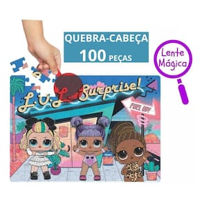 Jogo Quebra Cabeça Puzzle Play 100 Pçs Lente Magica Lol Surprise ElkaPrepare-se para uma aventura de quebra-cabeça cheia de surpresas mágicas com o Quebra-Cabeça Infantil Lol Surprise Lente Mágica!Este jogo de quebra-cabeça de 100 peças oferece horas de entretenimento cativante para os pequenos exploradores e fãs das adoráveis bonecas Lol Surprise.Lente Mágica Exclusiva: Este não é apenas um quebra-cabeça comum! Cada peça possui um toque mágico. Use uma lente especial incluída para revelar segredos escondidos nas imagens e desvendar mistérios emocionantes. As crianças vão adorar a sensação de descobrir surpresas ocultas enquanto montam o quebra-cabeça.Personagens Adoráveis: Entre no mundo das adoráveis bonecas Lol Surprise enquanto monta o quebra-cabeça. Cada peça traz à vida os personagens favoritos das crianças, estimulando a conexão emocional e os envolvimentos durante todo o processo de montagem.Desafio e Conquista: Com 100 peças, este quebra-cabeça oferece o equilíbrio perfeito entre desafio e diversão para crianças em crescimento. A montagem do quebra-cabeça não apenas aprimorada como habilidades motoras e cognitivas, mas também ensina a persistência e a sensação gratificante de completar um desafio.Atividade em Família: Reúna a família para uma tarde de diversão criativa! O Quebra-Cabeça Lol Surprise Lente Mágica é perfeito para unir pais e filhos, compartilhando emoções, histórias e alegria enquanto colaboram para montar a imagem final.Qualidade Duradoura: Feito com materiais de alta qualidade, as peças são resistentes, garantindo que este quebra-cabeça se torne um tesouro a ser apreciado repetidamente.Faça Parte da Magia:Traga a magia das bonecas Lol Surprise para sua casa com o Quebra-Cabeça Infantil Lol Surprise Lente Mágica. Desenvolva habilidades, explore imagens encantadoras e crie memórias preciosas enquanto as crianças se divertem e aprendem ao mesmo tempo. Abrace a alegria da descoberta com cada peça encaixada!