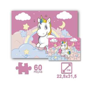 Quebra cabeça com linda e fofa paisagem do Unicórnio se divertindo com 60 peças em cartonado, de otima qualidade. Com um design inovador e cores vibrantes, este quebra cabeça proporciona a sensação de superação quando se consegue montar. As cores podem até ajudar, mas o grande segredo está no desenho das peças. Desafie-se!