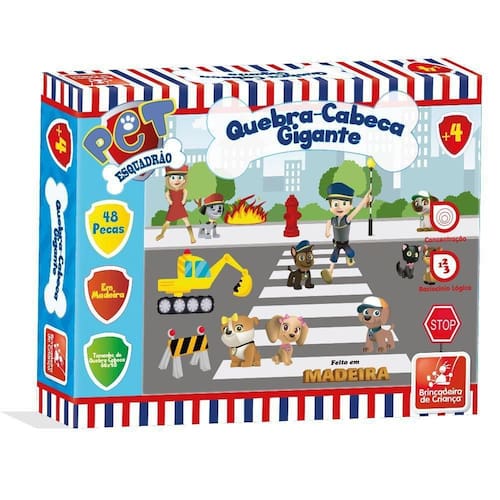 Um quebra-cabeça com peças gigantes para a brincadeira ficar ainda mais divertida. Auxilia na concentração e raciocínio lógico. São 48 peças gigantes, encaixa facilmente, não deforma e é super resistente Comece a montar esse divertido quebra-cabeça e forme uma divertida imagem Especificação: Marca: Brincadeira de criança Idade: +4 anos Contém: 48 peças Material: Madeira Dimensão da embalagem: CxLxA 30,5x23x5,5 cm Peso: 545 gramas Dimensão do quebra cabeça: 47x32 cm Nome: Pet esquadrão Ref: 0558 ATENÇÃO: Não recomendável para crianças menores de 3 anos, por conter peças pequenas que podem ser engolidas Segurança INMETRO CE-BRI/OCP-N 00013-01 NM 300/2002 Ean: 7898945400558