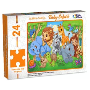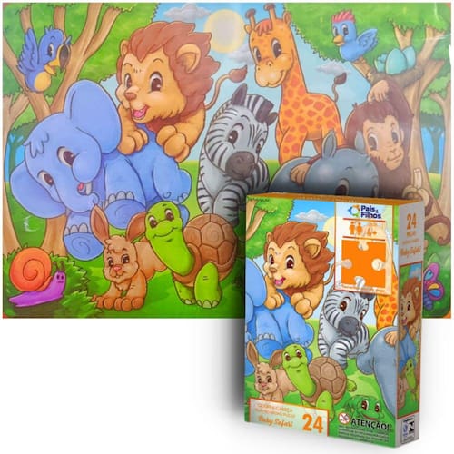 Quebra cabeça com linda e fofa paisagem do Zoo Safari Baby Animais contem 24 peças. Com um design inovador e cores vibrantes, este quebra cabeça proporciona a sensação de superação quando nossos pequenos conseguem montar. As cores podem até ajudar, mas o grande segredo está no desenho das peças. Eles vão adorar esse desafio!