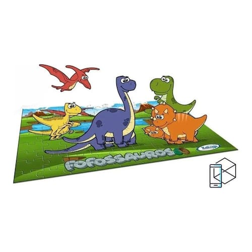 O quebra cabeça interativo Fofossauros auxilia no desenvolvimento da coordenação motora, fundamental na formação educacional e cognitiva das crianças. Com o jogo Interactive Play Quebra-cabeça Fofossauros a criança, além de montar o quebra-cabeça 100 peças em madeira, depois de montado poderá captar as imagens através do App e aprender sobre os dinossauros.Instruções1° Baixe o aplicativo (Interactive play) na loja do sistema operacional do seu aparelho;2° Abra o app e clique em "eu tenho o jogo físico";3° Direcione a câmera horizontalmente sobre o quebra-cabeça ou QR-Code:4° Posicione verticalmente o celular/tablet e utilize o controle lateral para guiar até os personagens para aprender mais sobre os dinossauros.Especificações:- Contém: 100 peças- Dimensões da cena: 26,7cm (L) x 39,7cm (C)Observação:• Não é necessário nenhum tipo de cola e nem de ferramentas.• A performance do aplicativo pode variar de acordo com o processador e câmera do dispositivo.