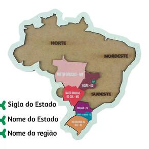 - material: mdf - número de peças: 5 - composição: 1 tabuleiro de 24 x 25 x 1 cm + 5 peças separadas por região - idade recomendada: a partir de 5 anos