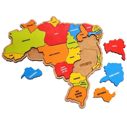 Aprender as regiões e estados do nosso país fica mais fácil montando este quebra cabeça do mapa do Brasil A maneira mais divertida, estimulante e dinâmica de aprender brincando Jogos de quebra cabeça infantil auxiliam a criança a trabalhar noções de movimento, coordenação motora, raciocínio lógico e concentração.