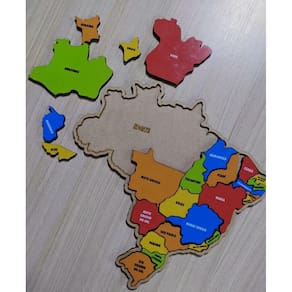 Marca: Maninho Modelo: Mapa do Brasil quebra cabeça - Quebra cabeça das regiões do Brasil Tipo: Quebra cabeça geografia Material: mdf Composição: tabuleiro de 38 x 37 x 0,6 cm + 26 peças dos estados de 4 mm adesivadas em vinil Idade mínima recomendada: a partir dos 4 anos.