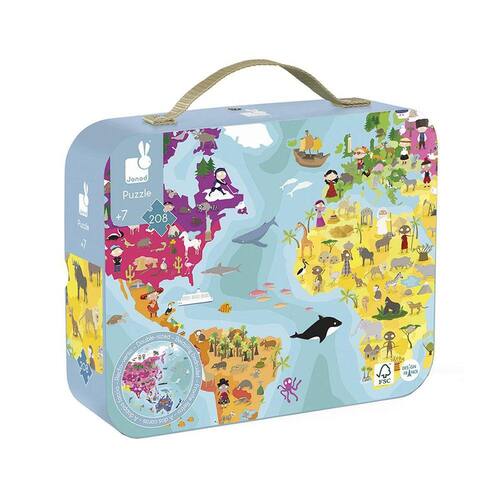 Quebra-Cabeça Mapa Mundi Dupla Face 208 Peças Madeira Janod