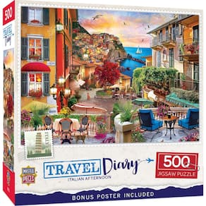 MasterPieces Quebra-cabeça da tarde italiana 500 peças adultos jovens família - Tema de viagem Itália - 38 cm x 53 cm - Quebra-cabeça desafiador: quebra-cabeça de 500 peças para adultos, famílias ou crianças. - Charme italiano: apresenta uma cena pitoresca de uma tarde italiana para entusiastas de viagens. - Acabamento fosco: reduz o brilho para uma experiência agradável de quebra-cabeça. - Ecológico: Feito de material 100% reciclado e tintas à base de soja. - Garantia de qualidade: Apoiado pelo compromisso da MasterPieces com quebra-cabeças de alta qualidade e satisfação do cliente.