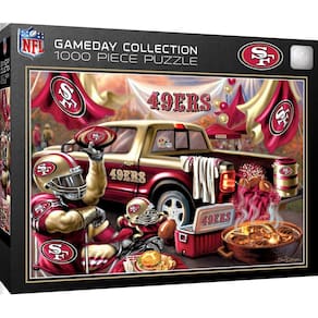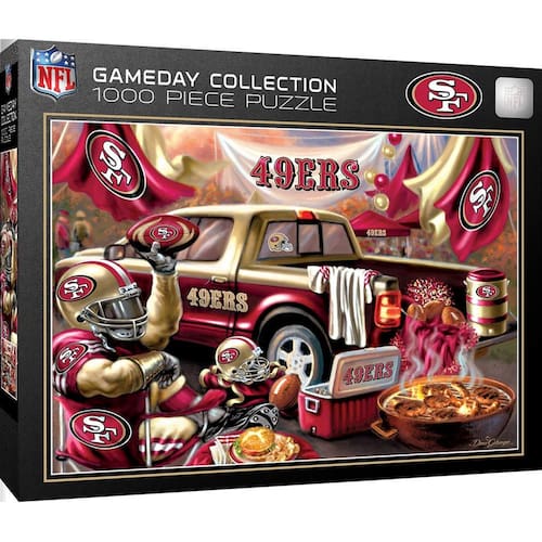 MasterPieces - Quebra-cabeça de 1000 peças, NFL San Francisco 49ers, divertido para adultos e família, acabamento sem brilho, 49 cm x 68 cm - Licenciado oficialmente: nossos quebra-cabeças NFL são oficialmente licenciados pelas ligas em que seus times favoritos jogam; divertidos para dias de jogos e não autorização; o nível de dificuldade é apropriado para um fã adulto desfrutar; para crianças menores de 14 anos, esses quebra-cabeças são melhor feitos em família - FORMAS ÚNICAS: O quebra-cabeça possui 1.000 peças em uma variedade de cortes, garantindo um desafio; peças grossas interligadas seguram firmemente; acabamento fosco antirreflexo reduz o cansaço visual - Responsável pelo meio ambiente: nossos quebra-cabeças são feitos de material 100% reciclado e tintas à base de soja não tóxicas - Entretenimento para todos: a coleção MasterPieces oferece a maneira perfeita de manter a diversão noturna do jogo; selecione entre quebra-cabeças para adultos, idosos e crianças; baralhos exclusivos de baralho, jogos de tabuleiro, dominó, kits de artesanato e muito mais