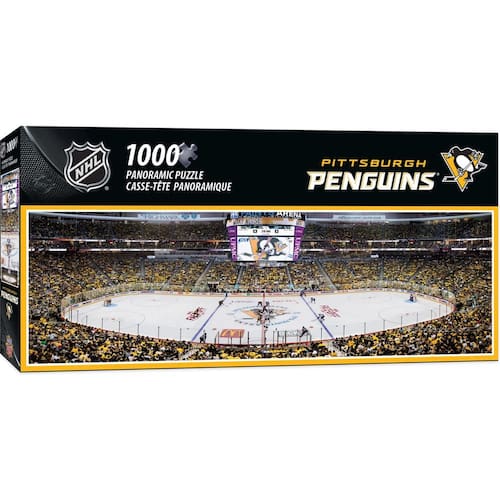 MasterPieces Quebra-cabeça esportivo de 1000 peças - NHL Pittsburgh Penguins Vista Panorâmica - 33 cm x 99 cm - Licenciado oficialmente – Todas as decorações esportivas, jogos e quebra-cabeças da Masterpieces são oficialmente licenciados com a qualidade para combinar! Não aceita imitações. - Adequado para enquadramento e montagem quando concluído - Design exclusivo – Todos os quebra-cabeças Masterpieces são cortados aleatoriamente para garantir uma experiência nova e desafiadora com cada quebra-cabeça! A maneira perfeita de manter a noite de jogo divertida. - Ecológico – Nossos quebra-cabeças são feitos de material reciclado e não tóxico, tintas à base de soja para diversão ecológica! - Desafiante – Nossos quebra-cabeças para adultos são projetados para serem divertidos e desafiadores. O nível de dificuldade é apropriado para um fã adulto desfrutar. Para crianças menores de 14 anos, estes quebra-cabeças são melhor feitos em família. - Garantia de qualidade – Masterpieces é uma empresa americana de quebra-cabeças e jogos. Garantimos nossos produtos e garantimos sua satisfação. Todos os nossos produtos são cobertos por nossa garantia de satisfação e prometemos resolver quaisquer problemas que você tenha - As imagens da NHL Arena chegam a quebra-cabeças - Estas belas imagens panorâmicas da sua arena favorita do time NHL - Quebra-cabeças de 1000 peças - Um quebra-cabeça desafiador para os fãs de futebol universitário ou quebra-cabeças