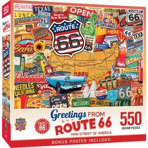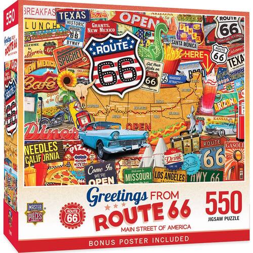 MasterPieces - Quebra-cabeça de 550 peças, Route 66 Main Street of America, divertido para adultos, família, crianças, 45,7 cm x 61 cm