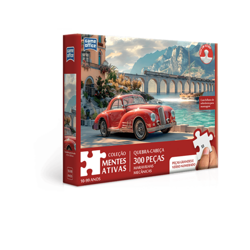 Quebra-cabeça de 300 peças, com peças grandes e resistentes que facilita a montagem ajudando você a exercitar sua mente aumentando sua concentração e desenvolvendo sua criatividade