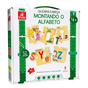 1 Quebra-Cabeça Montando o Alfabeto 52 pçs em Madeira 2112 - Brincadeira De Criança