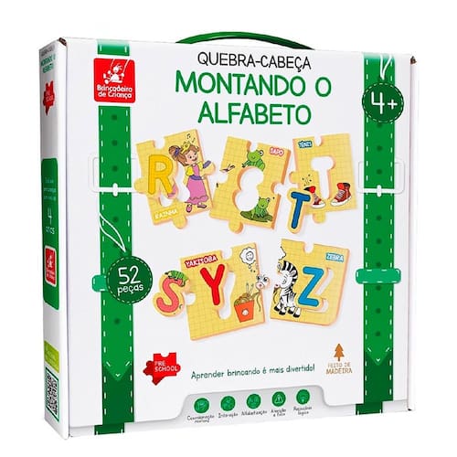 Com o quebra-cabeça Brincadeira de Criança Montando o Alfabeto, você desfrutará de longas horas de entretenimento garantido. Além disso, você exercitará seu cérebro aumentando sua concentração e desenvolvendo sua criatividade. Aceite o desafio de montá-lo no menor tempo possível, sozinho ou trabalhando em equipe com amigos ou familiares. São 52 peças em madeira.