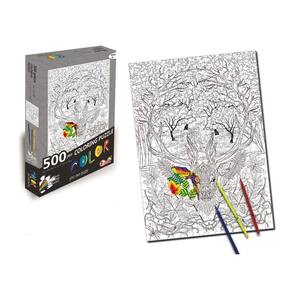 Relaxe com este divertido quebra-cabeça de colorir! Primeiro você monta o quebra-cabeça de 500 peças. Em seguida, personalize-o com os seis (6) marcadores coloridos incluídos! Tamanho aproximado do quebra-cabeça montado: 27 1/2 x 19 5/8 polegadas.