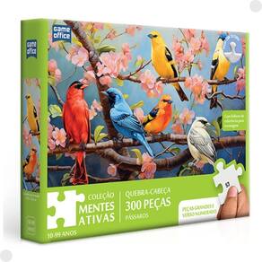 A Coleção Mentes Ativas foi desenvolvida para incentivar as capacidades mentais. O quebra cabeça Pássaros na Cerejeira Possui 300 Peças de Tamanho grande, o que facilita a atividade e permite que todos possam Participar. Além disso, as peças vêm numeradas no verso, caso você precise de uma mãozinha.