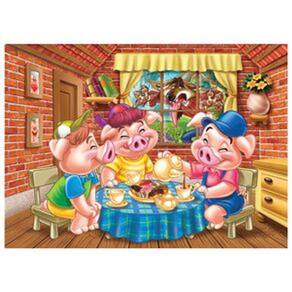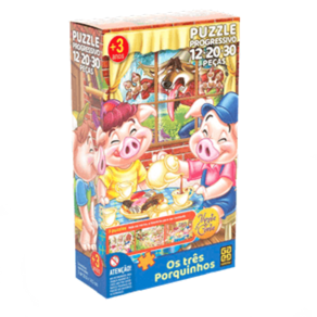 Com 3 quebra-cabeças que contam a história dos Três Porquinhos. A criança monta os quebra-cabeças e pode ler a história no verso da embalagem.