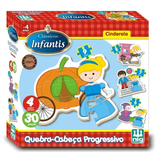 Cinderela é o primeiro personagem da coleção de quebra-cabeças progressivos Clássicos Infantis da NIG.