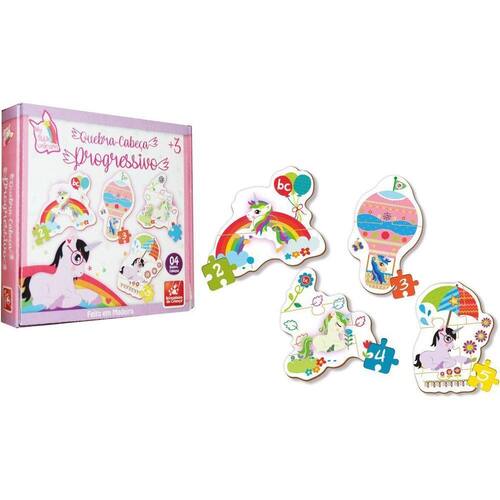 Quebra Cabeça Progressivo Unicórnio Brincadeira de Criança