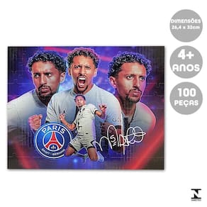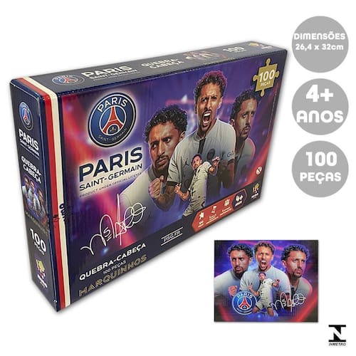 Quebra cabeça psg marquinhos 100 pcs mimo toys para todos os fãs de futebol e quebra-cabeça vai entrar em uma jornada de montagem. Quebra-cabeça dos jogadores do paris saint germain é colecionável e desenvolve o raciocínio, habilidades e promovem a interação entre crianças e adultos de forma divertida. Características: - 100 peças - tamanho total: 26,4 x 32cm - inmetro: 008653/2022 -imagens meramente ilustrativas- atenção: a cor do produto pode variar de acordo com o monitor atenção: o fabricante pode alterar a cor de alguma parte do produto sem aviso prévio.Homologação Inmetro: CE-BRI/ICEPEX-N 01264-25-23