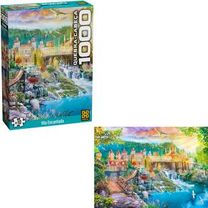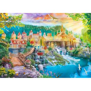 Descrição do produto : " Um lugar mágico, onde pontes de madeira, castelos encantados e cachoeiras cristalinas criam um cenário de conto de fadas. Ideal para quem sonha com um refúgio de pura fantasia e beleza. A partir de 10 anos Quantidade de peças: 1008 Dimensões aproximadas: 50 x 70 cm : "