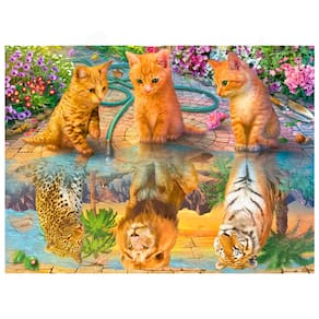 Dê vida aos reflexos que fazem gatinhos se verem como majestosos felinos, ensinando uma lição sobre autoimagem e poder interior!
