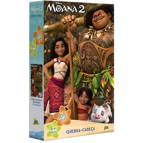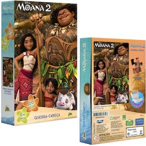 Descrição do produto : Aventuras e magia esperam por você com o quebra-cabeça Moana 2 - 100 Peças! Perfeito para crianças e fãs do filme, este quebra-cabeça traz uma imagem vibrante e cheia de emoção, com Moana e seus amigos em uma nova jornada. Com 100 peças, ele oferece o equilíbrio ideal entre desafio e diversão, ajudando no desenvolvimento da concentração, habilidades motoras e raciocínio lógico. : Detalhes técnicos : Código : 3264 Fornecedor : Toyster Código de Barras : 7896054032646 Peso (kg) : 0,19 Comprimento Emb. (cm) : 15 Altura Emb. (cm) : 24 Largura Emb. (cm) : 5 Imagem montada 22,5 x 34,5 cm :