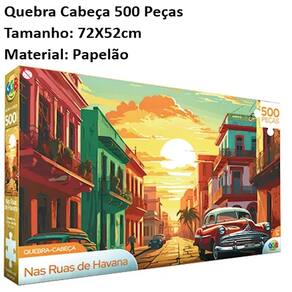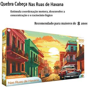 Quebra Cabeça Nas Ruas de Havana 500 Peças Brinquedo educativo divertido e perfeito para o aprendizado Cada peça deste puzzle te leva a visão detalhada e autêntica