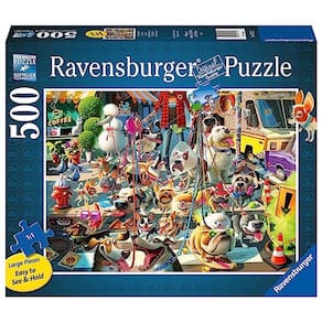Caramba, esse é um cara ambicioso, com 23 woofers para andar! Esse tesouro de cães inclui uma mistura de vira-latas e raças, de um pequeno Yorkshire Terrier a um enorme São Bernardo. Fifi, o Poodle, não gosta de andar pelas ruas mesquinhas da cidade, e o pobre Duke fica mortificado ao ser visto em público usando um cone de vergonha! “The Dog Walker” inclui toda a diversão peculiar que você desfrutou nos quebra-cabeças de Dean MacAdam — ele até adicionou alguns ovos de Páscoa da Ravensburger para maior entretenimento — divirta-se!