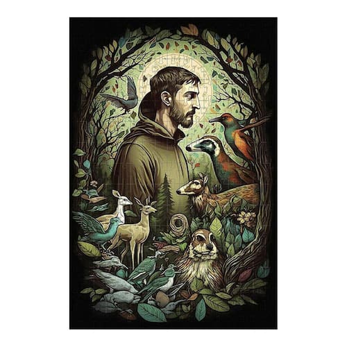 Quebra-cabeça Religioso São Francisco 300 peças quebra-cabeça Religioso São Francisco 300 peças São Francisco de Assis foi um homem especial. Ele nos ensinou a valorizar a simplicidade da vida e a importância de viver sem amarras. Viveu como se não tivesse preocupações com dinheiro e gravatas, pois sabia que as coisas que mais importavam eram aquelas que vinham de coração. Carregou consigo a paz e o amor, irradiando-os ao redor, e nos ensinou a nos entregarmos à vontade de Deus. Seu coração transbordava de amor e alegria, tão cheio de bondade que era impossível desviar os olhos do seu sorriso radiante. Ele nos lembra que viver é muito mais do que possuir, que seu amor pode ultrapassar qualquer fronteira e que sua generosidade nos ensinará a nos tornarmos melhores seres humanos. Pensando em uma forma de levar um pouquinho mais de São Francisco para seu lar e seu coração, lançamos o Quebra-Cabeça Religioso Sâo Francisco de Assis 300 peças, feito com muito amor em homenagem á esse santo tão amado. Além de uma ótima maneira de se divertir criando belos momentos em família, o Quebra-Cabeça pode ser montado e colocado em uma linda moldura, perfeito para decorar seu cantinho preferido da casa. Marca: Coleção Tea