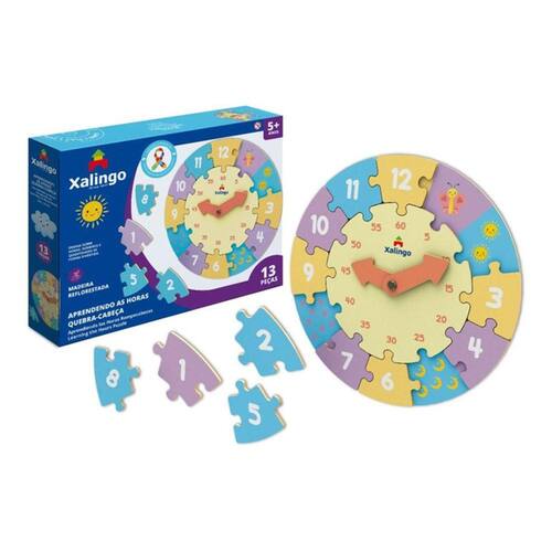 O quebra-cabeça relógio proporciona um aprendizado divertido sobre as horas e números. De forma lúdica e criativa a criança pode montar e desmontar as peças de cada hora do relógio, associando números e quantidades através de suas ilustrações. Auxilia na concentração, criatividade, paciência e autocontrole.Especificação:• Possui 13 peças• Material: MDF (Madeira Reflorestada)• Dimensões do Quebra-cabeça: 26 cm (Diâmetro) x 0,6 cm (Espessura) • Dimensões da caixa: 6 cm (A) x 17,5 cm (L) x 25,5 cm (C)Observação• Ccertificação Inmetro: 007064/2020• Recomendado para crianças maiores de 5 anos• Não recomendável para crianças menores de 3 anos por conter partes pequenas que podem ser engolidas ou aspiradasINFORMAÇÕES IMPORTANTES:- A cor do produto pode sofrer variação de tonalidade, de acordo com a configuração do seu dispositivo ou monitor.- O prazo de entrega informado no anúncio é apenas uma previsão, podendo sofrer alterações na data de entrega por motivo de força maior.