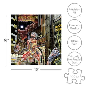 - QUEBRA-CABEÇA DE 500 PEÇAS DO IRON MAIDEN SOMEWHERE IN TIME: Divirta-se montando este quebra-cabeça de 500 peças com a arte da capa do álbum Somewhere in Time do Iron Maiden. Ele mede 12 x 12 polegadas quando concluído