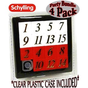 O quebra-cabeça de 15 (Number Slide Brain Teaser) - pacote com 4 é incrível! O "Quebra-cabeça de 15" consiste em 15 quadrados numerados de 1 a 15 que são colocados em uma caixa de 4 x 4, deixando uma posição fora dos 16 vazios. O objetivo é reposicionar os quadrados de um determinado arranjo inicial arbitrário deslizando-os um de cada vez. Deslize os números e misture. Agora coloque-o de volta em ordem, não é tão fácil! Este quebra-cabeça desafiador manterá as rodas girando! É um ótimo presente e é perfeito para lembrancinhas de festa, recheios de meias, cestas, necessidades especiais, promoções e muito mais! Para maiores de 8 anos - Diversão para toda a família! - O quebra-cabeça mede 6,3 cm x 6,3 cm x 0,5 cm - Quebra-cabeça clássico: o quebra-cabeça Schylling's 15 é um jogo atemporal de slides de números que desafia e aprimora suas habilidades de resolução de problemas. - Não é tão fácil quanto parece! Vem com embalagem blister. Os jogos medem 2 quadrados. - Ótima ideia de presente: perfeito para entusiastas de quebra-cabeças, amantes de quebra-cabeças e como um enfeite de meia exclusivo - Design compacto: Tamanho perfeito para diversão em movimento, seja em casa, na escola ou durante viagens. - Para maiores de 8 anos - Diversão para toda a família! - O quebra-cabeça mede 6,3 cm x 6,3 cm x 0,5 cm - Pacote de festa em massa inclui 4 dos 15 quebra-cabeças da Schylling (Number Slide Brain Teaser)!